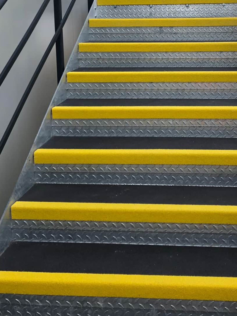Une contremarche bien visible permet de signaler une montée d’escalier à une personne malvoyante afin de prévenir les risques de chute. Nous appliquons des adhésifs sur les faces verticales des marches pour créer un effet de contraste avec les marches. Nos produits résistent bien aux frottements et aux chocs.